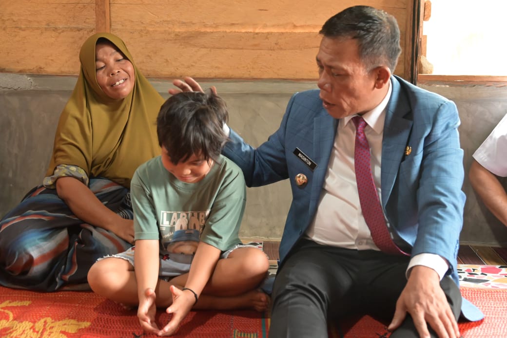 Bupati Tapanuli Tengah mengunjungi Istri korban, Masnida dan kelima anak korban yang sudah mengungsi ke tempat keluarga yang berada di Kelurahan Binasi Kecamatan Sorkam Barat pada Rabu (01/10/2025).