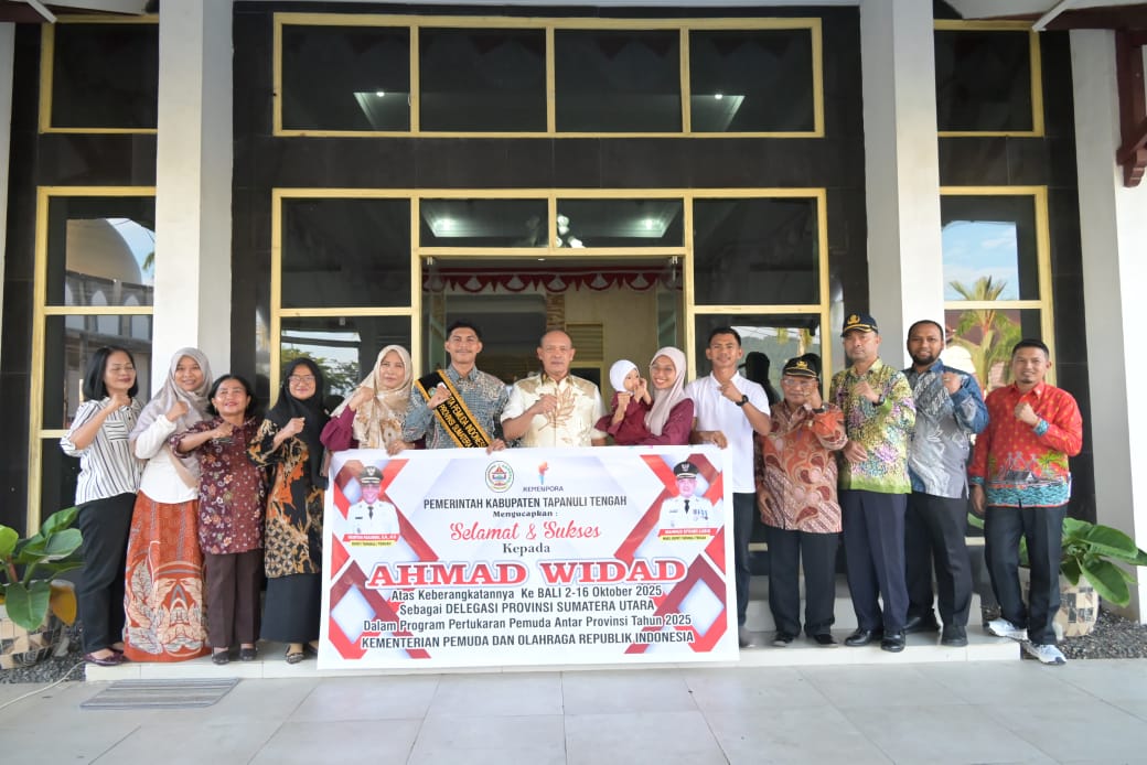MajalahCeo.id I Tapteng (Sumut) – PANDAN – Wakil Bupati Tapanuli Tengah Mahmud Efendi Memberangkatkan Ahmad Widad perwakilan Kabupaten Tapanuli Tengah sebagai Delegasi Provinsi Sumatera Utara dalam rangka Program Pertukaran Pemuda antar Provinsi tahun 2025 yang dilaksanakan di Lobi Kantor Bupati Tapanuli Tengah, Kamis (02/10/2025).