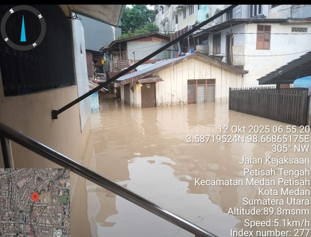 MajalahCeo.I’d | Medan – Hujan deras sejak Sabtu sore hingga Minggu dini hari (12/10/2025), menyebabkan banjir mengepung Kota Medan. Sejumlah kecamatan terdampak banjir cukup parah, akibat meluapnya beberapa daerah aliran sungai (DAS) seperti Das Deli, Babura, dan Sunggal.