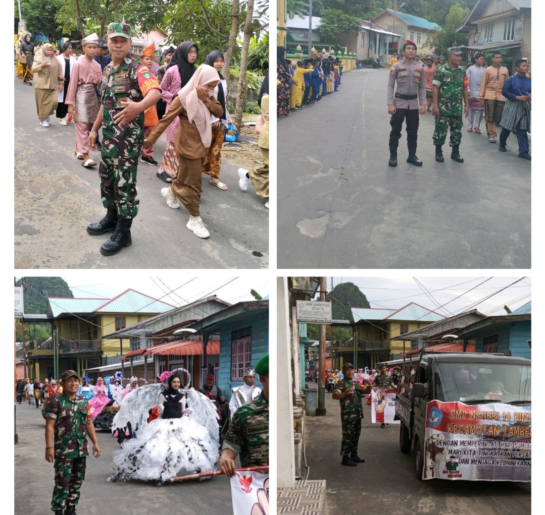 “Terima kasih kepada Bapak Serma Amrialdi dan Peltu M. Hasanuddin atas pengamanan yang baik selama pawai Sumpah Pemuda. Warga dan murid-murid merasa sangat aman dan nyaman, dan kegiatan ini dapat berjalan dengan lancar berkat.” Kepala Sekolah SMPN 14 Bintan Doni Aris Wibowo