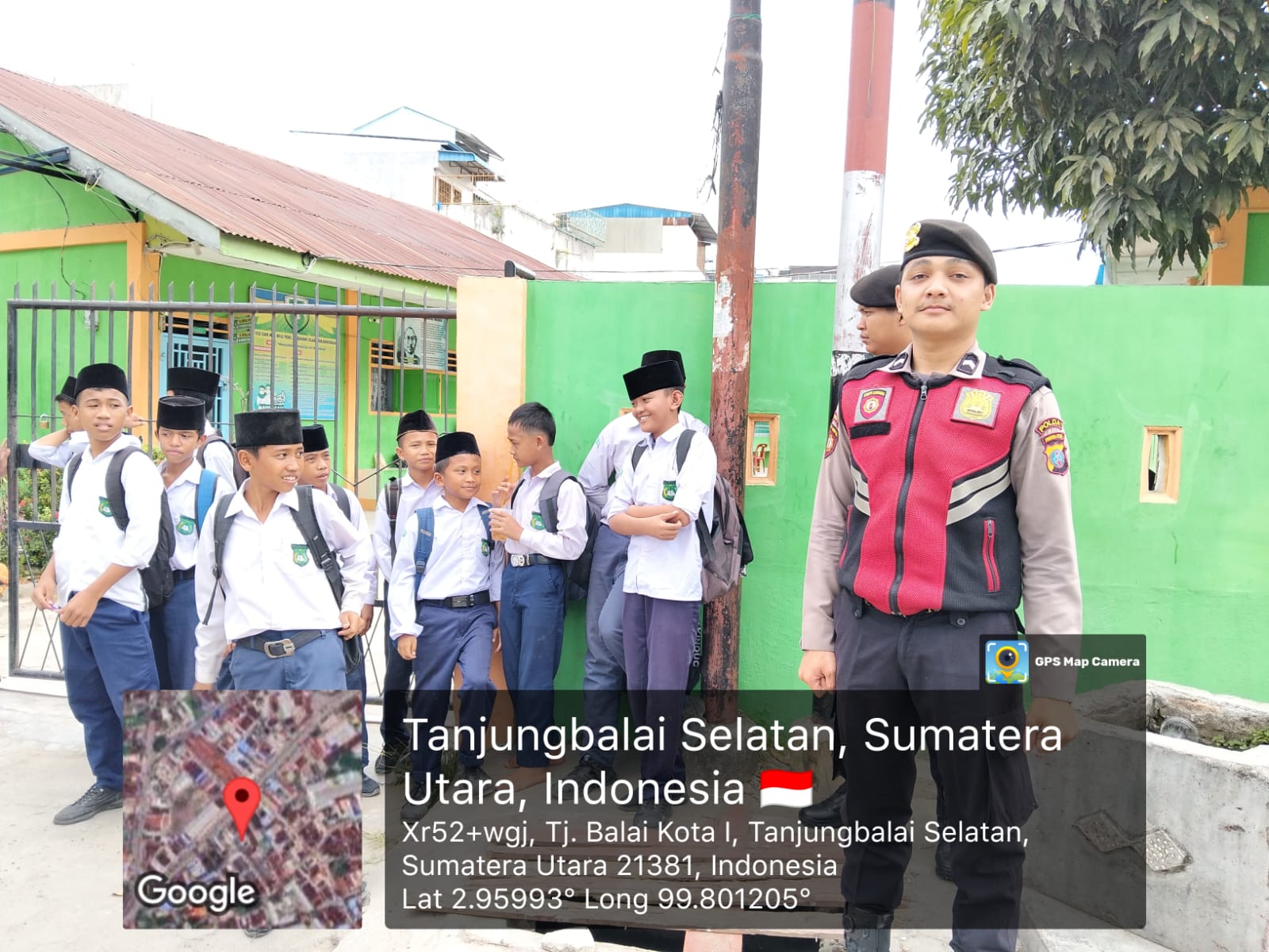 Personel Sat Samapta yang melaksanakan kegiatan Bripda Rizky Maulana, Bripda Ilyas, Bripda Kevin dan Bripda Aufi mengunjungi Madrasah Gubahan Kota Tanjungbalai.