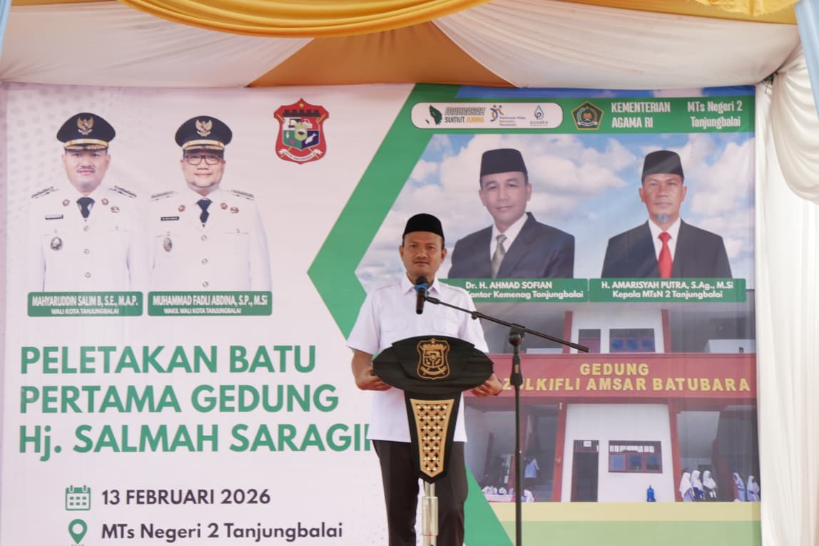 Majalahceo.id | Tanjungbalai – Bertempat di MTSN 2 Tanjungbalai, Jalan Anggur Kelurahan Pantai Johor, Kecamatan Datuk Bandar, Kota Tanjungbalai telah dilaksanakan Acara Peletakan Batu Pertama Gedung Hj Salmah Saragih MTSN 2 Tanjungbalai Jumat (13-2-2026).