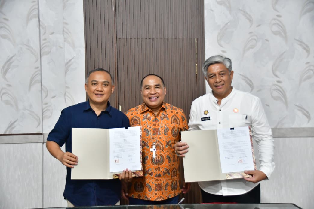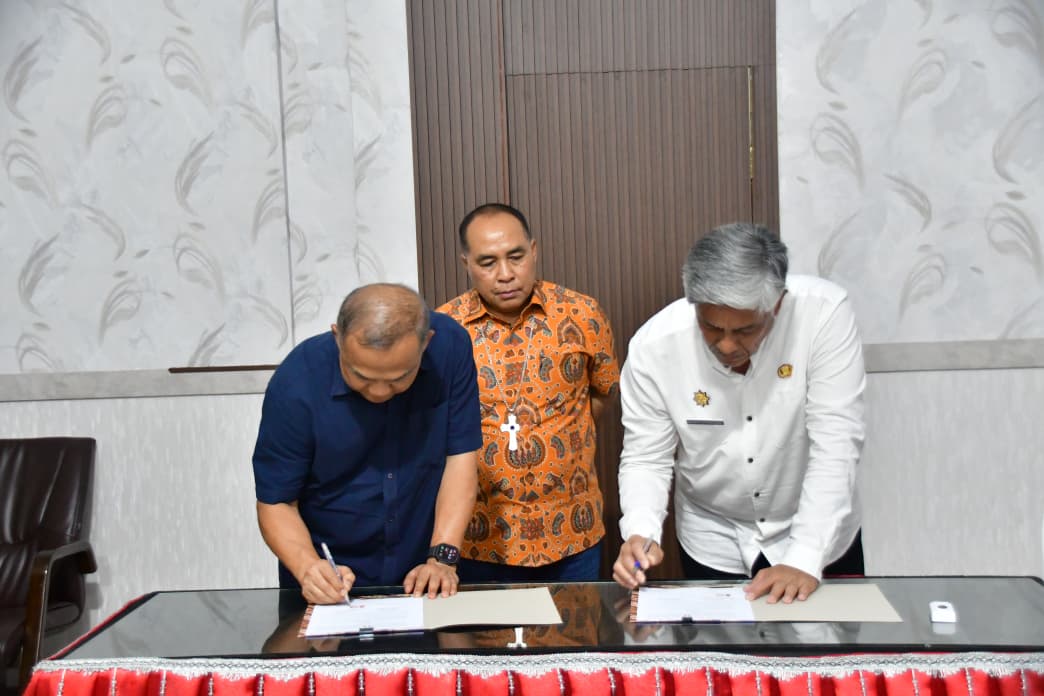 MajalahCeo.id I Tapteng (Sumut) – PANDAN – Bupati Tapanuli Tengah Masinton Pasaribu, SH, MH diwakili Sekretaris Daerah Kabupaten (Sekdakab) Tapanuli Tengah (Tapteng) Drs. Binsar TH Sitanggang, M.SP, bersama Caritas Indonesia yang dihadiri oleh Fresh Rante Taruk selaku Direktur Eksekutif Caritas Indonesia pada hari Rabu, 25 Februari 2026 bertempat di Ruang Rapat Cendrawasih Kantor Bupati Tapteng melaksanakan penandatanganan Kesepakatan Bersama tentang Perencanaan dan Pelaksanaan Program Peningkatan Kulitas dan Pembangunan Perumahan serta Kawasan Pemukiman, Akses Layanan Dasar, Pengurangan Risiko Bencana, dan Respons Bencana Banjir Bandang dan Tanah Longsor di Kabupaten Tapteng.
