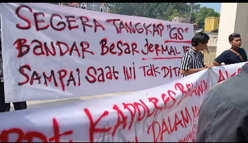 Aksi Melawan: Genosida Pembunuhan Massal Generasi Muda Geruduk Poldasu, Ada Spanduk Berisi Tangkap “GS” Bandar Besar Jermal 15