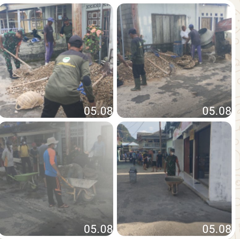 Babinsa Desa Kampung Hilir Ikuti Kegiatan Gotong Royong Pengecoran Jalan Lingkar Laut
