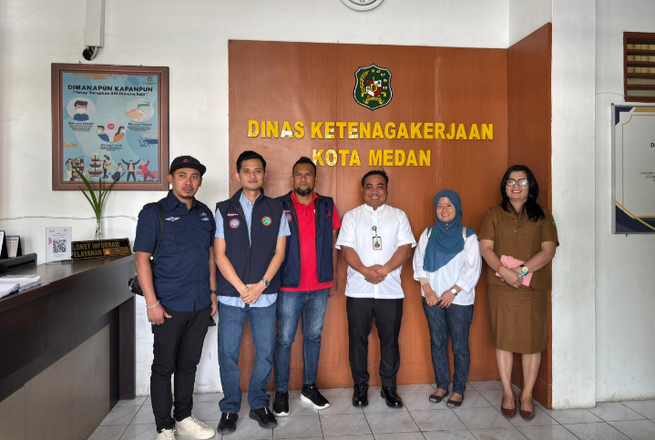 Majalahceo.id | Medan – Dibawah Komando Ibrahim Ketua PC FSP KEP SPSI Kota Medan yang juga Bendahara KSPSI AGN KOTA mendatangi Kantor Disnaker Kota Medan, Senin (23/2/2026)