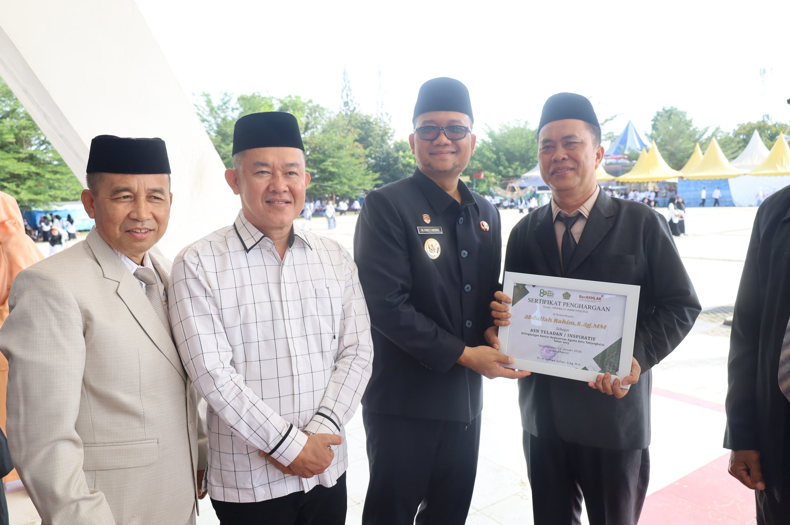Setelah upacara resmi, kegiatan dilanjutkan dengan penyematan Tanda Kehormatan Satya Lencana Karya Satya, penyerahan sertifikat wakaf tanah oleh Wakil Wali Kota Tanjungbalai didampingi BPN, pemberian piagam kepada ASN teladan dan inspiratif Kemenag Tanjungbalai, serta pelepasan balon sebagai simbol harapan dan semangat pengabdian.***