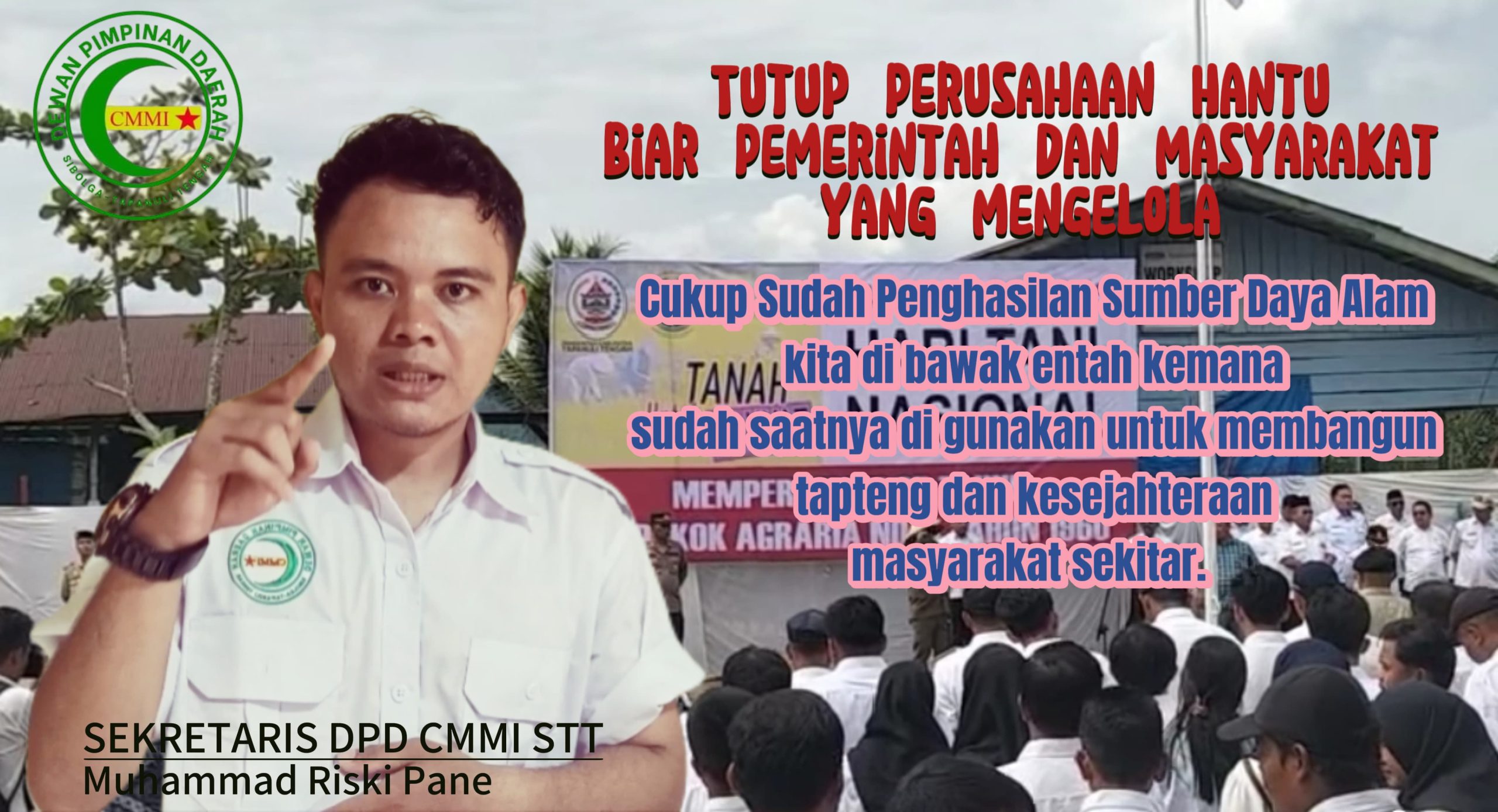 Muhammad Riski mendukung bupati tapanuli tengah menutup atau mengambil alih perusahaan PT CPA, lebih baik pemerintah dan masyarakat langsung mengelola HGU tersebut dikarenakan sudah 32 tahun PT CPA berdiri namun dugaan sampai saat ini plasma dan CSR nya belum jelas.