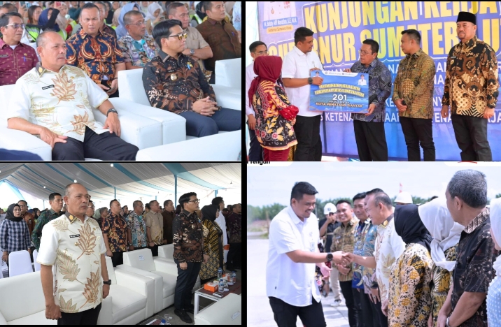 MajalahCeo.id I Tapteng (Sumut) – Simalungun – Wakil Bupati Tapanuli Tengah Mahmud Efendi menghadiri Penyerahan Kartu BPJS Ketenagakerjaan bagi Pekerja Rentan se-Sumatera Utara yang diserahkan oleh Gubernur Sumatera Utara Bobby Nasution kepada seluruh Bupati dan Wali Kota se-Sumatera Utara, yang dilaksanakan di Kawasan Ekonomi Khusus (KEK) Sei Mangkei Kabupaten Simalungun, (09/10/2025).