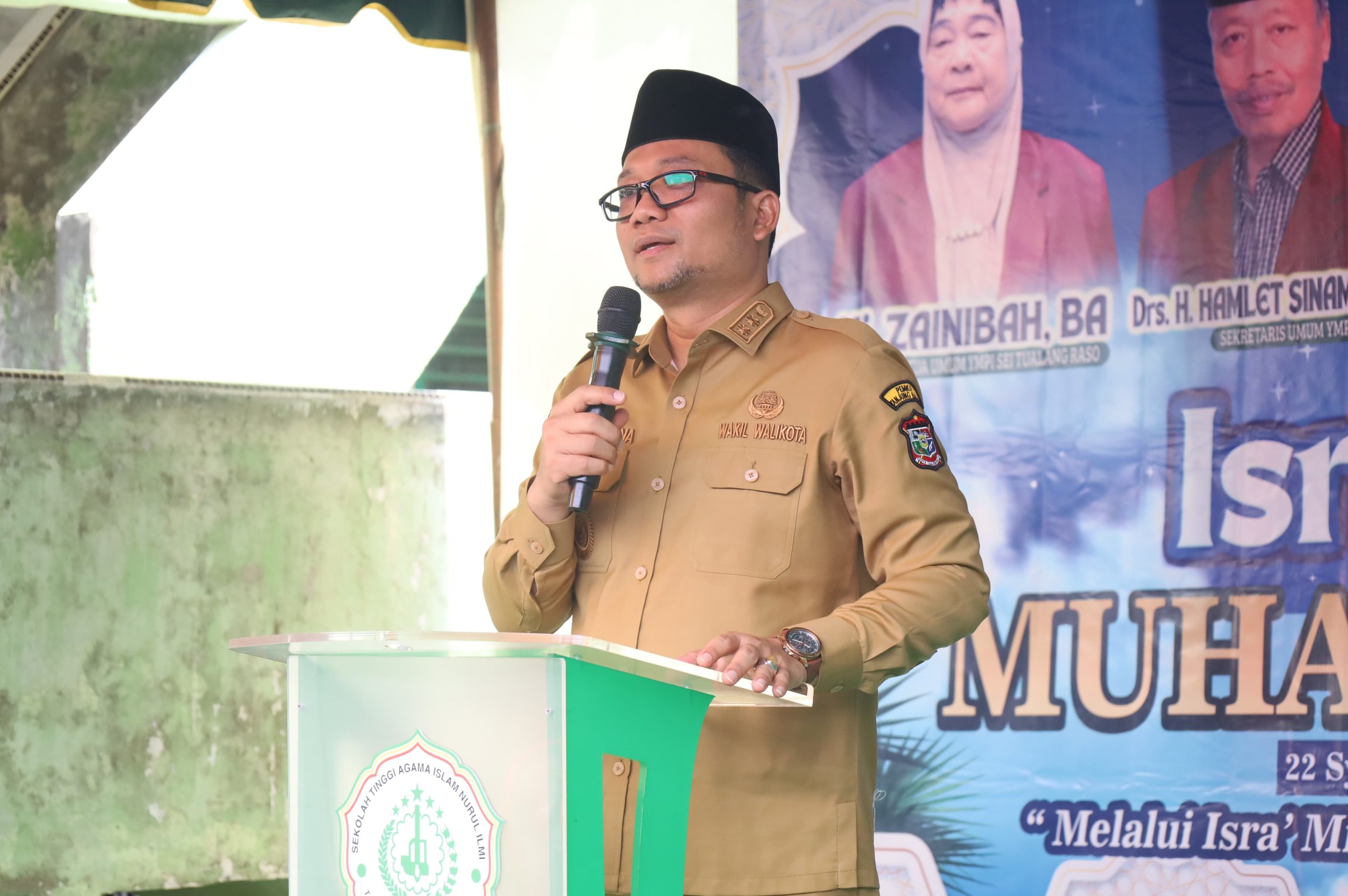 Majalahceo.id | Tanjungbalai – Wakil Wali Kota Tanjungbalai Muhammad Fadly Abdina menghadiri acara peringatan Isra Miraj Nabi Muhammad SAW 1447H/2026M yang dilaksanakan di halaman MAS YMPI Sei Tualang Raso, Jalan Besar Teluk Nibung, Kelurahan Sumber Sari, Kecamatan Sei Tualang Raso, Selasa (10-2-2026)